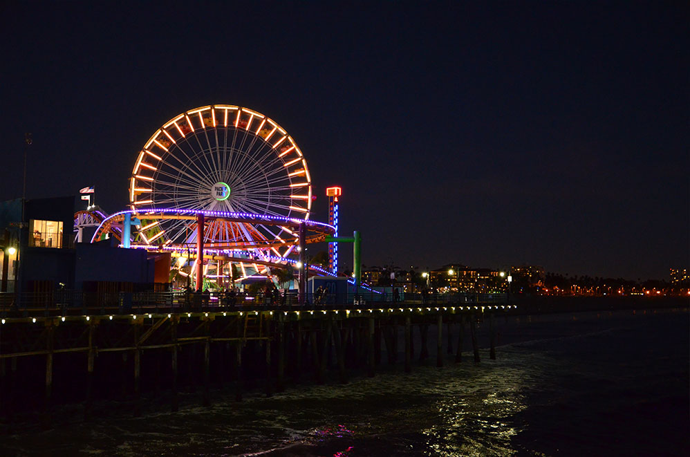 Nous garons la voiture dans un parking payant (mais vraiment pas cher comparé aux autres en front de mer) juste à côté de la rue commerçante au 429 Santa Monica Boulevard. C’est parti pour une longue balade le long de la plage et sur le célèbre Santa Monica Pier, ponton qui marquait le début (ou la fin) de la mythique Route 66.
