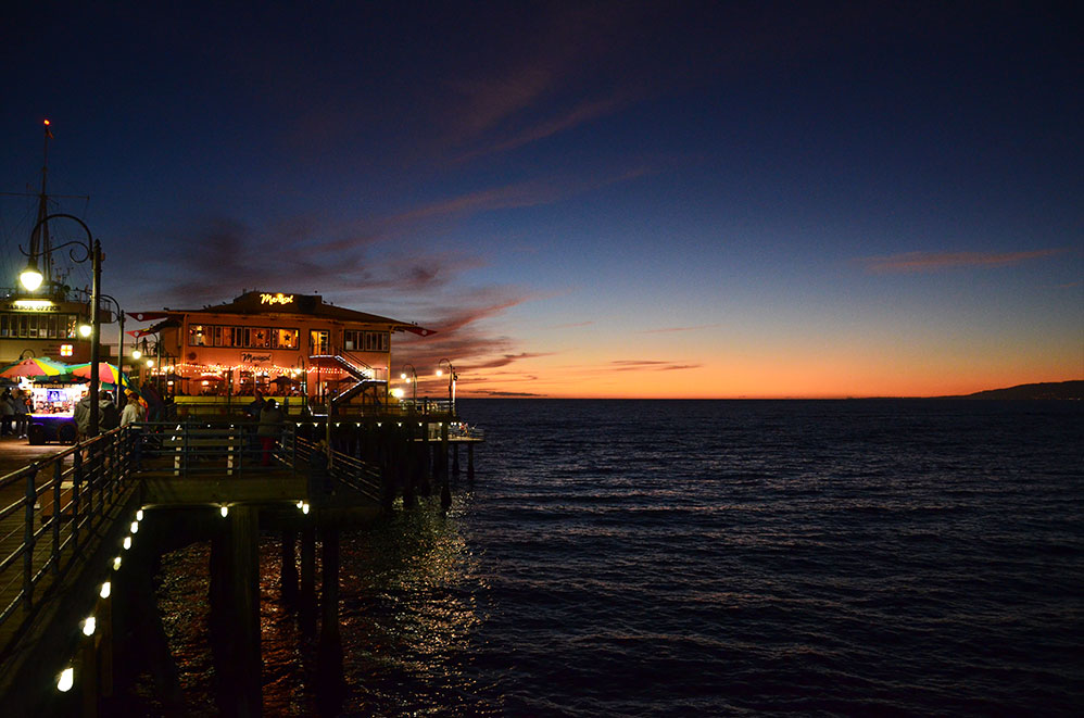 17 miles (27 km) pour traverser le centre ville de Los Angeles et plus de 2 heures dans les bouchons aurons raison de notre arrivée à temps pour admirer le coucher de soleil sur la plage de Santa Monica.