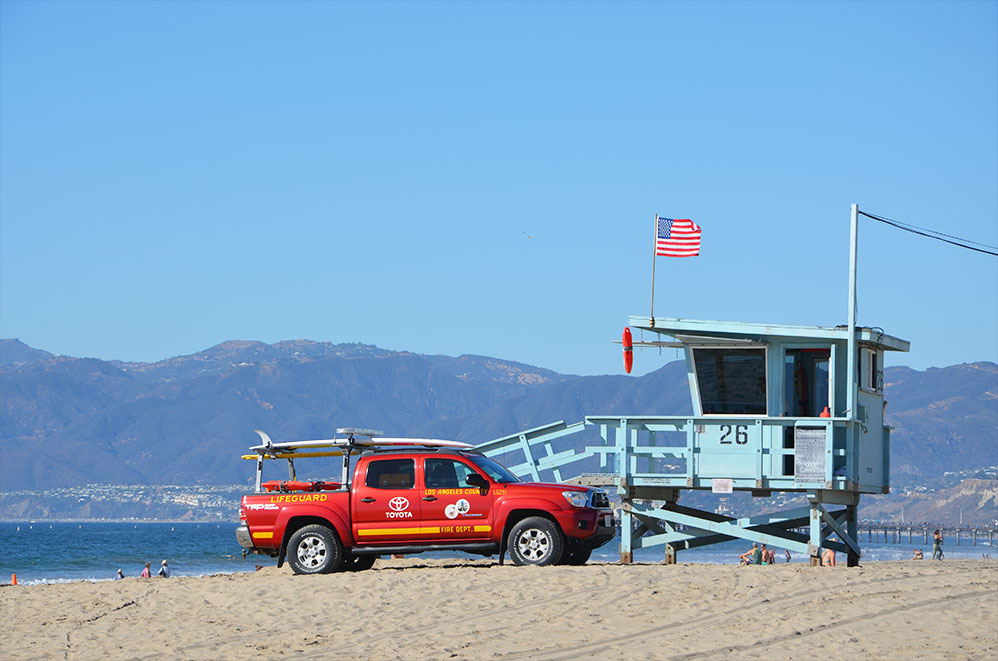 Venice Beach c’est un front de mer atypique, un lieu Peace & Love, mêlant surfeurs et marginaux. Et bien sûr… les fameuses « Lifeguard Towers » tout droits sorties d’Alerte à Malibu. La Californie quoi !