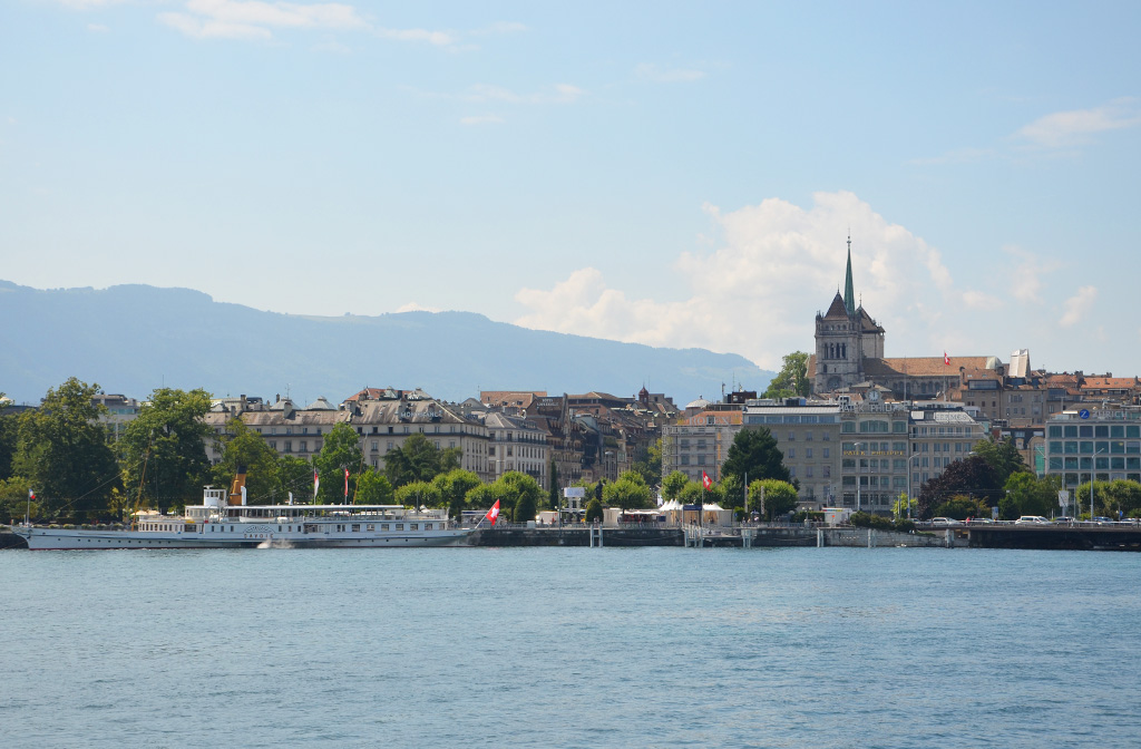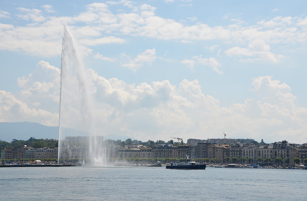 Arrivées à Genève, nous optons pour une balade en bateau sur le lac Léman « châteaux et résidences célèbres, sirène et petits ports » avec Swiss Boat pour 15€/pers. Nous passons devant le fameux Jet d’Eau : 140 mètres de haut et 500 litres d’eau par seconde à 200km/h, il est depuis 1891 au centre de la rade du lac Léman. La balade est agréable d’autant qu’il fait chaud !
