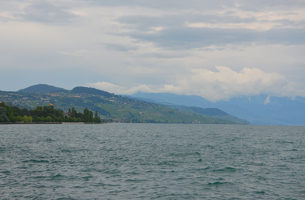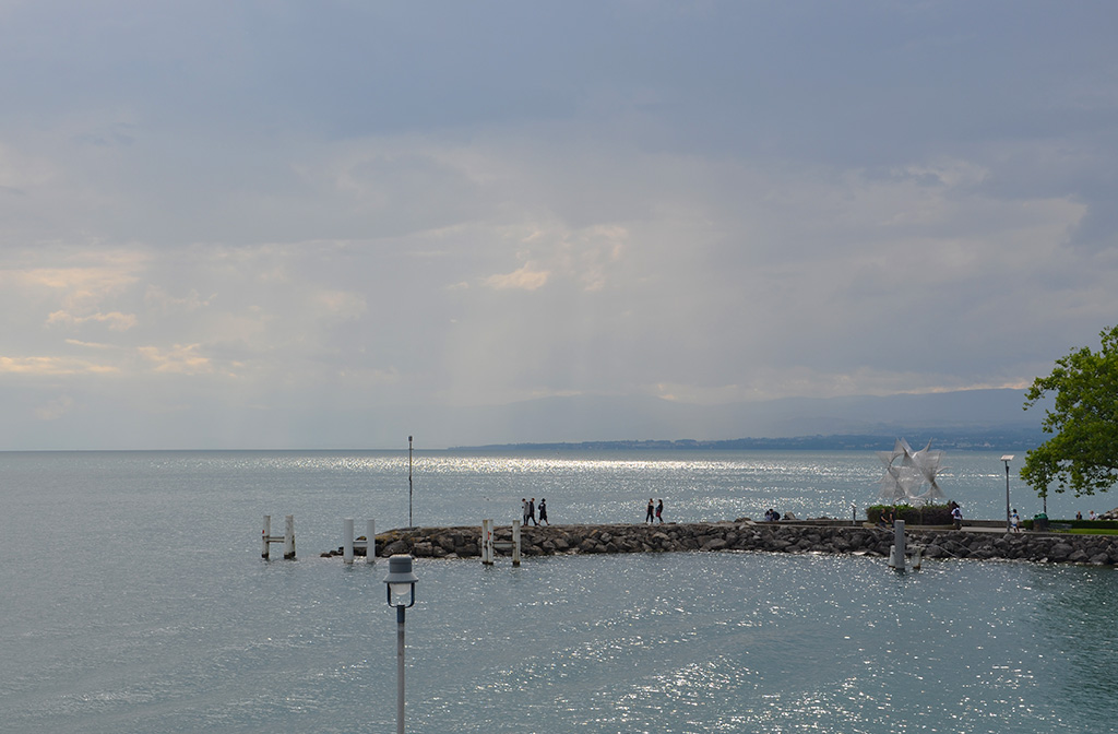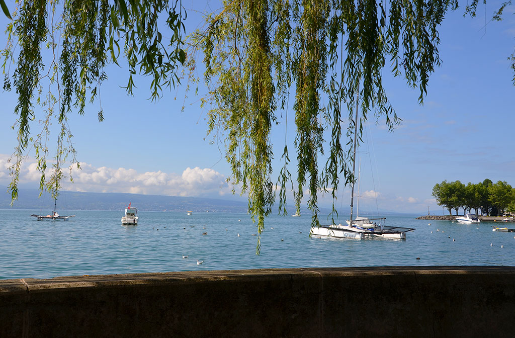 Nous prenons le temps d’une balade dans le parc avant de redescendre pour rejoindre les bords du lac Léman. Le ciel se couvre mais nous sommes charmées par ce paysage grandiose, d’un lac au pied des hautes montagnes.