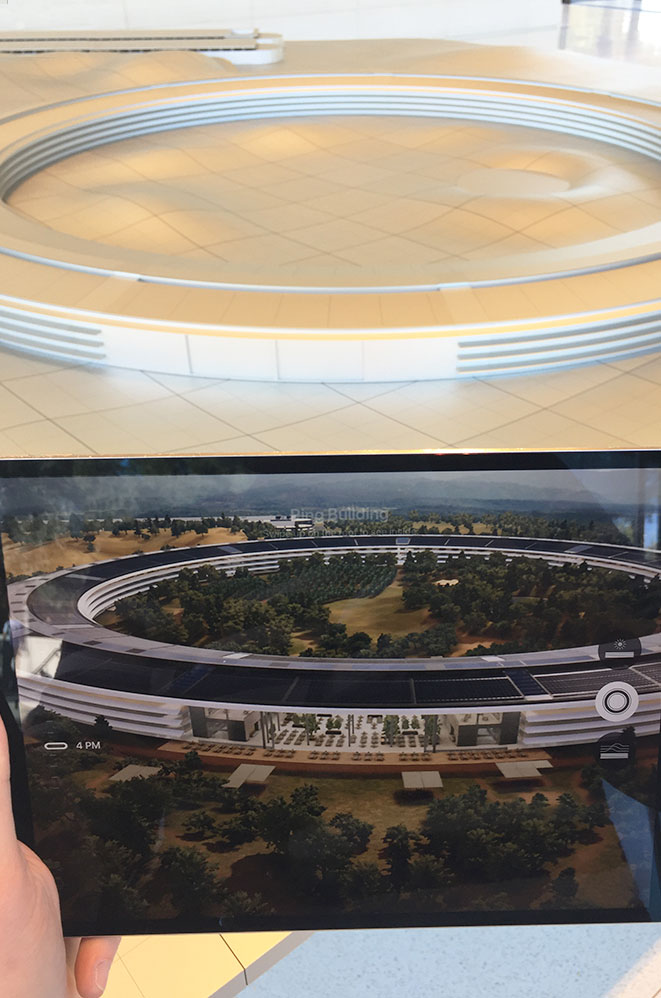 La boucle est bouclée quand, à 10 minutes de notre précédent arrêt, nous nous garons sur le parking du Campus Apple, One Infinite Loop. Tout neuf, ce bâtiment est un OVNI tout droit sorti de la tête de Steve Jobs quelques années avant sa mort. Il est inaccessible mais un visitor center a été construit pour tous les pèlerins de passage. Outre un Apple store et un café, vous y trouvez une maquette du Campus vous permettant de le découvrir de l’intérieur en réalité augmenté à l’aide d’iPad prêtés pour l’occasion.
