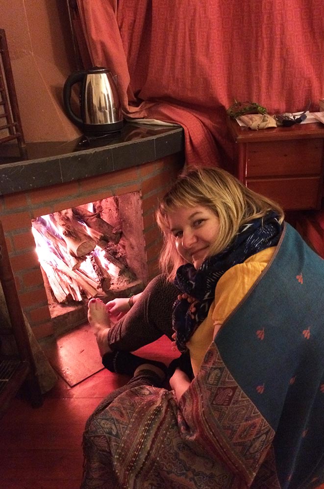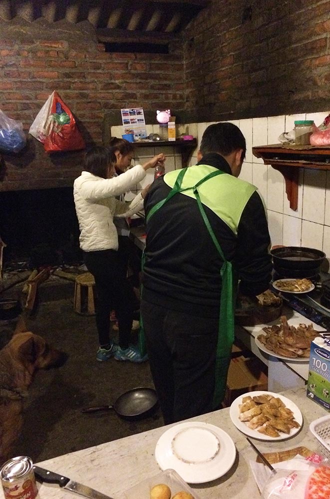 Elles nous proposent de nous arrêter chez elles pour le déjeuner au prochain village sur notre chemin. Curieuses et polies, nous acceptons. Nous découvrons une maison spartiate qui ressemble à une grange de ferme. Au sol, de la terre battue. Il n’y a pas de meubles et le feu de bois est au coeur de la pièce à vivre.