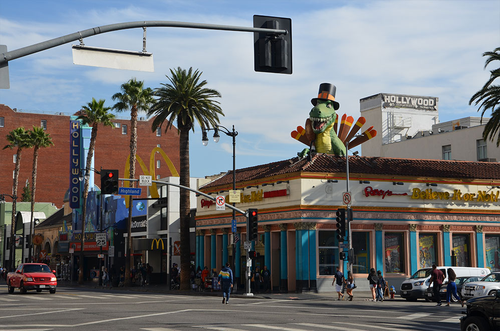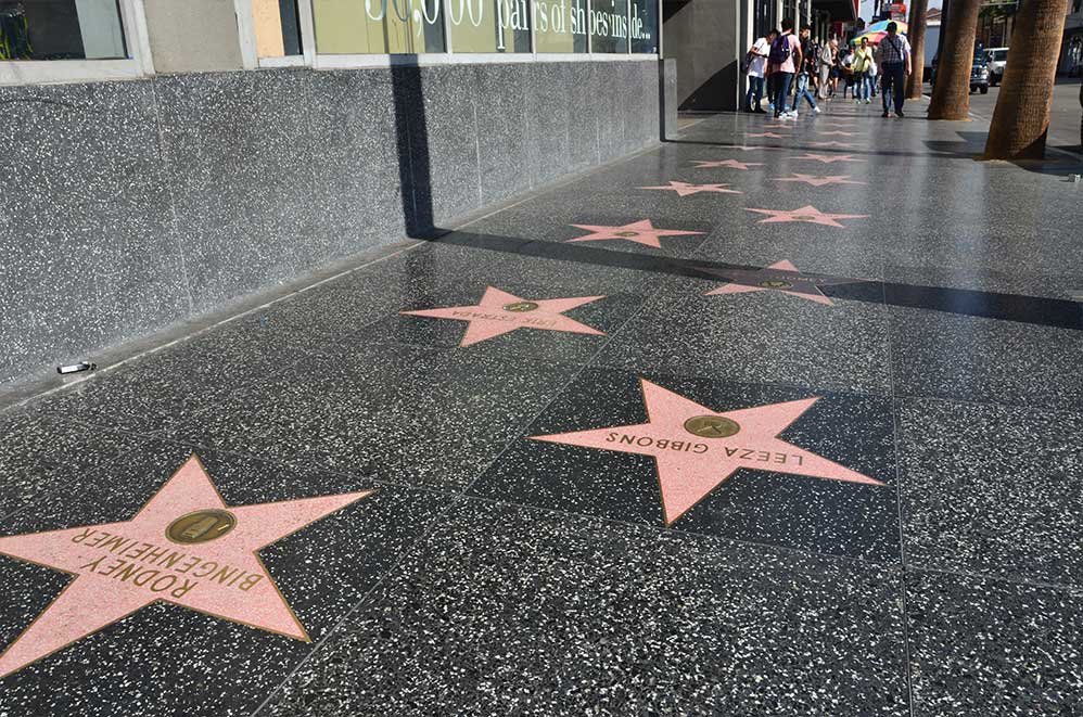 Passage au Grauman’s Chinese Theatre, lieu de toutes les grandes avant-premières. Devant, vous pouvez comparer vos mains et pieds à ceux de Michaël Jackson, Sophia Loren, Marilyn Monroe, Tom Hanks, Meryl Streep, Clint Eastwood,… entre autres !