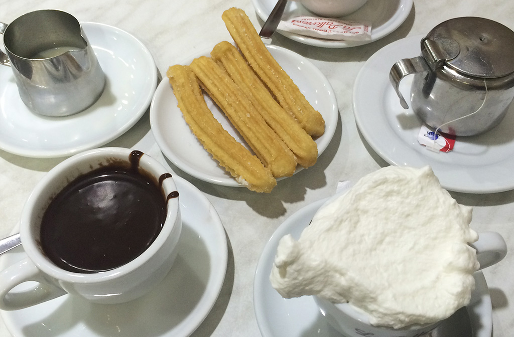 Après-midi dans les quartiers du Barri Gothic et d’El Born. Des dédales de petites rues pour marcher au grès de nos envies : charmant ! Pause goûter pour tester les fameux Churros con chocolate à la Granja La Pallaresa. Y aller pour le folklore du lieu et non pour son calme.