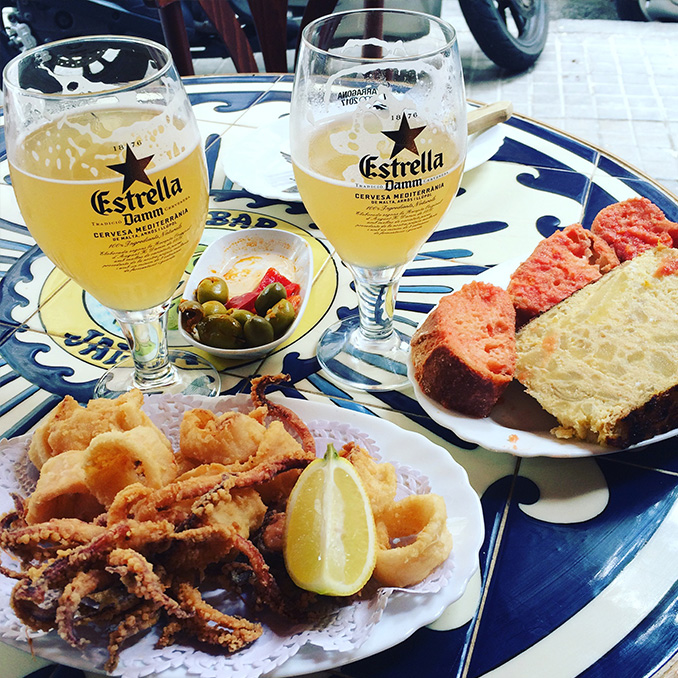 Nous déjeunons par hasard chez Jai-Ca, bar à tapas authentique et familial. Quelques tables en terrasse, un intérieur typique où se mêlent locaux lisant leur journal et étrangers un guide à la main. Et le plus important, des tapas de la mer délicieuses et pas chères (mention spéciale pour les calamares), le tout servi avec une Cerveza au citron. Un vrai bon plan apprécié des Barcelonais.