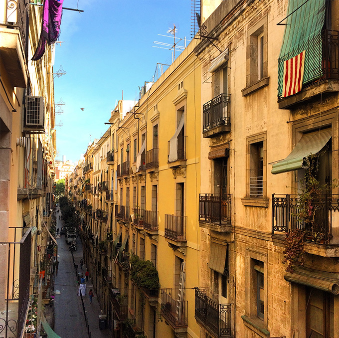Nous voilà dans le logement où nous avons loué une chambre AirBnB. Très sympa ! Mais mauvaise surprise… L’appartement étant en plein cœur du centre de Barcelone, dans un quartier piéton, il était plus que bruyant.