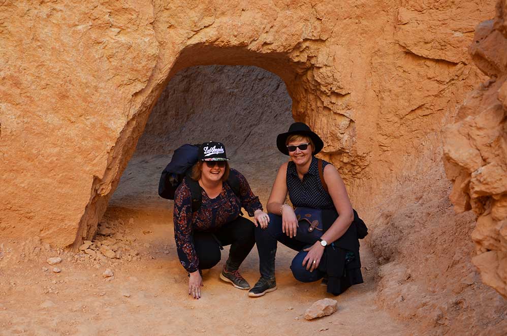 Nous partons, pique-nique dans le sac à dos, pour randonner au départ de Sunrise Point en descente sur le Queen’s Garden Trail. Nous marchons au plus près des cheminées de fées.
