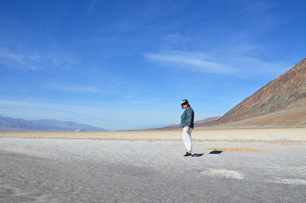 En arrivant par le sud de la vallée, nous avons commencé par l’un des endroits les plus connus du site : Badwater. Situé à 85,5 mètres sous le niveau de la mer, c’est le point le plus bas des Etats-Unis (si, si c’est possible !).