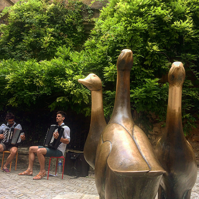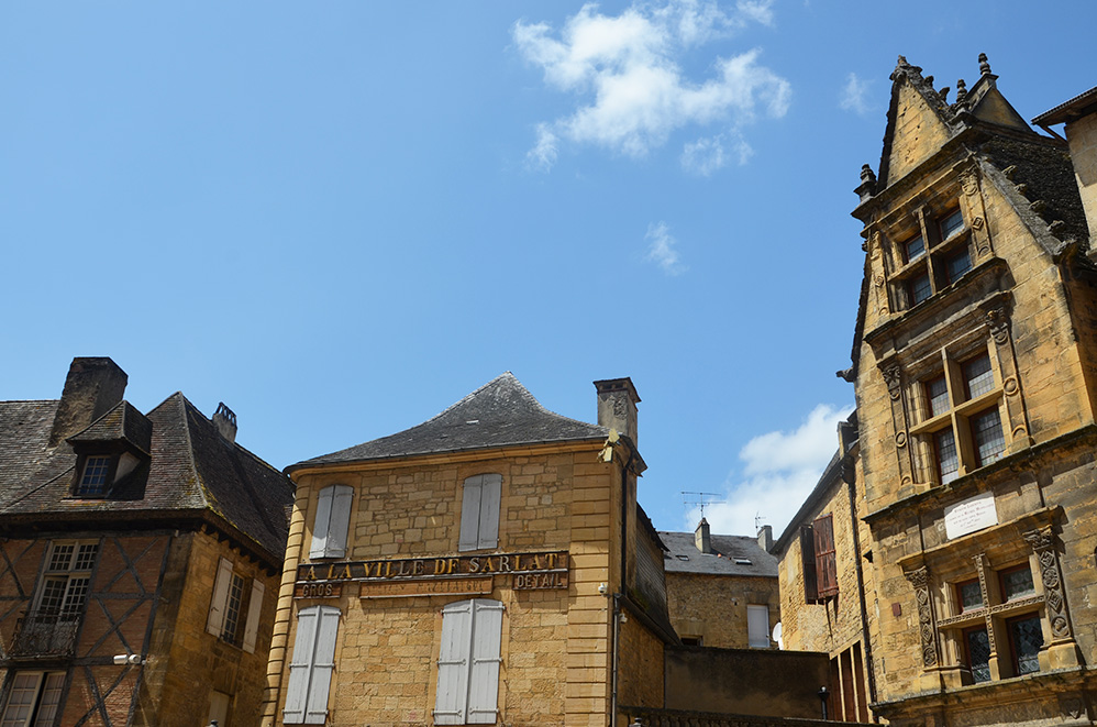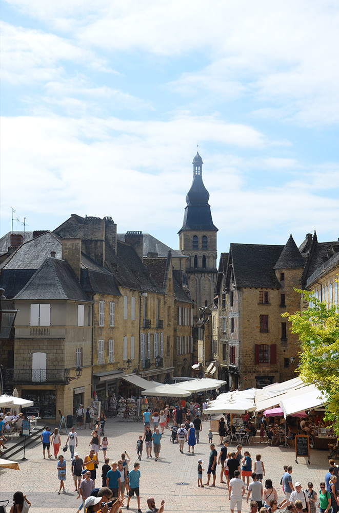 Nous passons la matinée dans les jolies ruelles historiques de la ville de Sarlat. Par bonheur, ce sont les soldes et c’est la journée de la braderie. Nous souffrons donc moins de la chaleur en passant de boutiques en boutiques 🙂