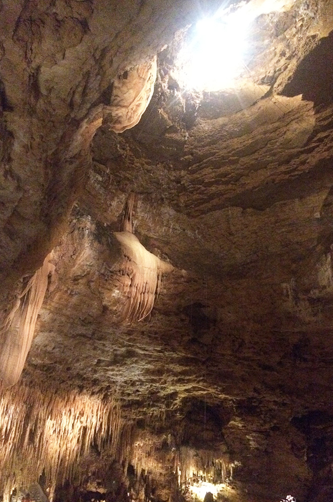 Après la grotte, plus vraie que vrai à Lascaux, nous descendons dans le gouffre de Proumeyssac surnommé « la cathédrale de cristal ». Grandiose voûte souterraine aux fontaines pétrifiantes de calcaire, nous descendons dans la grotte comme au début du XXème siècle, c’est-à-dire en nacelle. La grotte est bien aménagée et l’expérience étonnante.