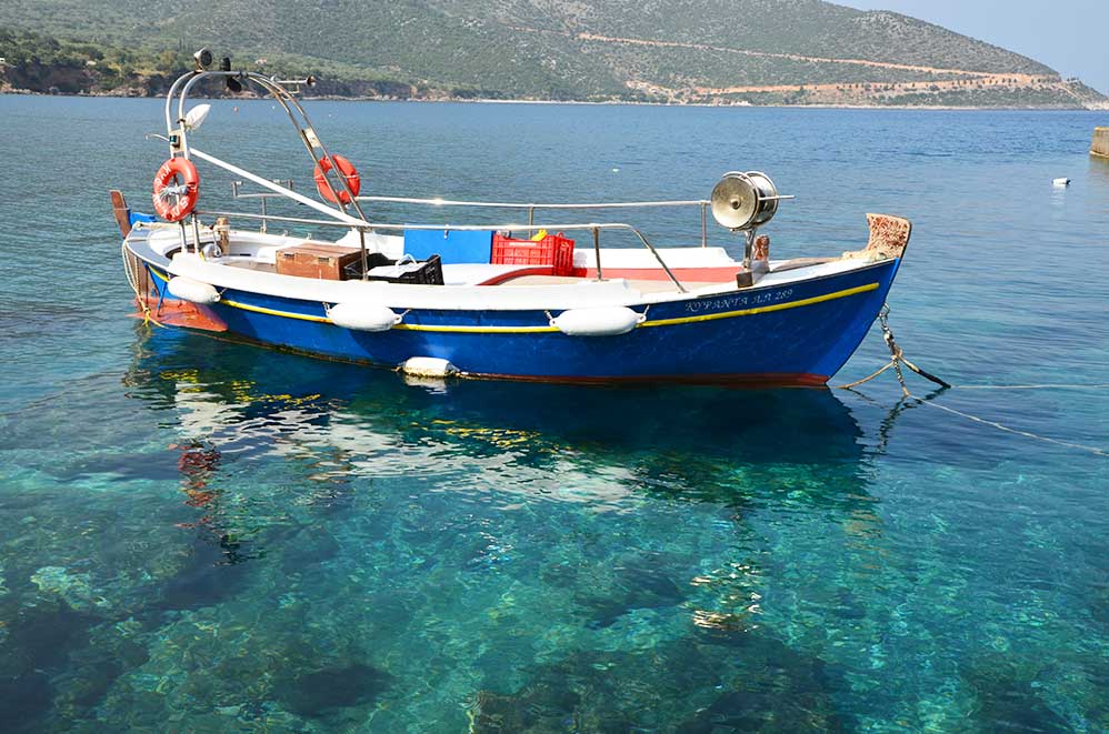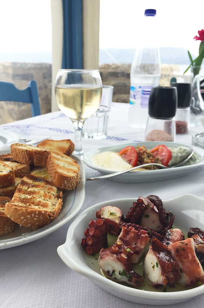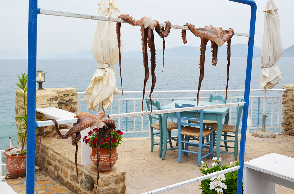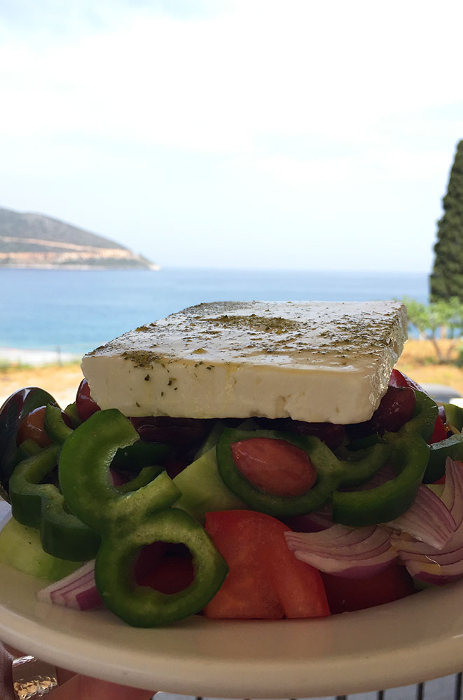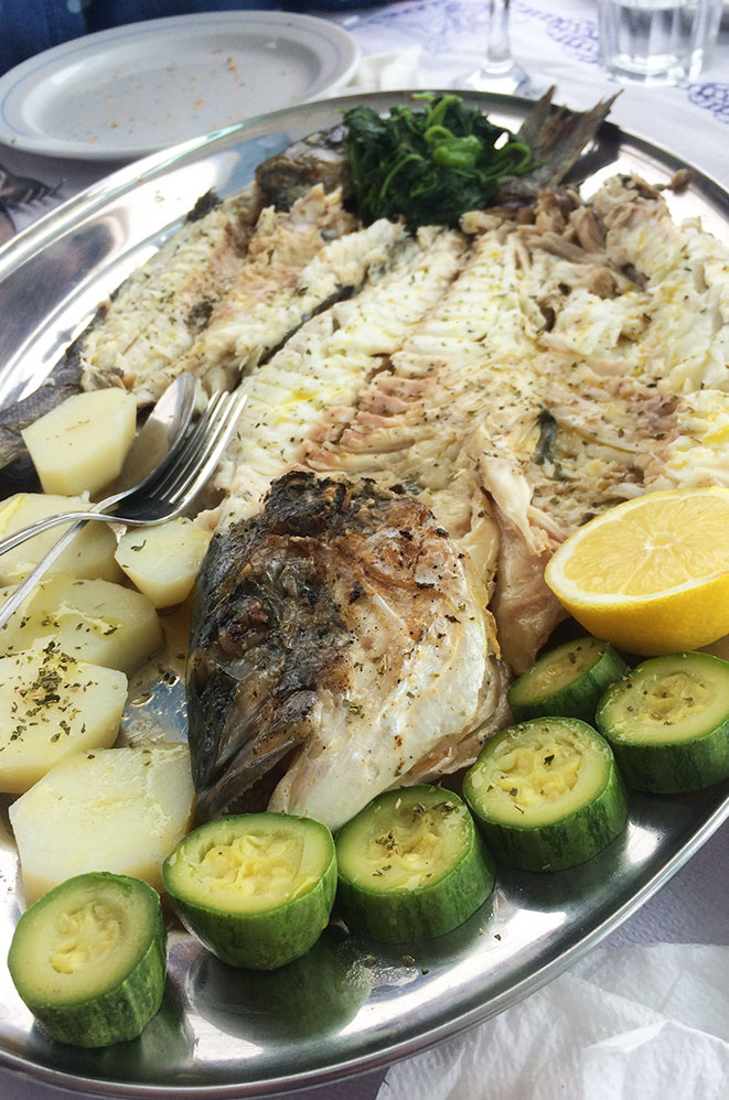 Nous continuons notre route et c’est dans le petit village d’Ermioni que nous nous arrêtons pour un superbe déjeuner en bord de mer. Au menu : poisson frais et la première salade de poulpe d’une longue série… Au large, nous avons même la chance d’apercevoir des dauphins.