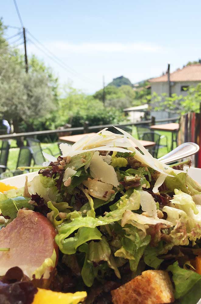 Après l’effort, le réconfort ! Nous déjeunons un peu plus haut chez Ktima Skreka, une auberge traditionnelle grecque à la cuisine vraiment délicieuse !