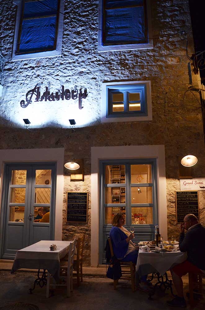 En redescendant, nous dinons dans un autre restaurant coup de cœur, Taverna Apagio, un peu plus loin sur le front de mer. Une cuisine grecque authentique, un service impeccable et toujours un personnel aux petits soins. Nous sommes enchantés par Poros, charmante et reposante.