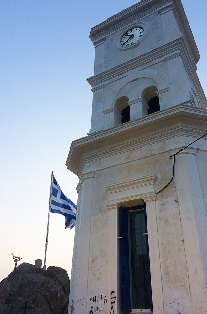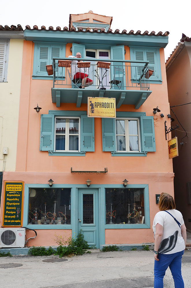 Nous déposons nos valises chez Aphroditi Pension, très bonne adresse ! Nous vous recommandons la chambre avec balcon donnant sur la placette, pleine de charme.