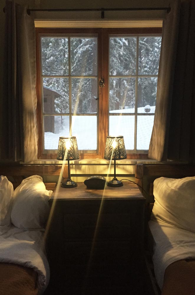 Nous arrivons à Grant Grove Village, sous une incroyable tempête de neige. Le paysage est magnifique ! Avant que la nuit tombe, nous passons au visitor center et au magasin puis nous dinons à l’unique mais bon restaurant du village.
