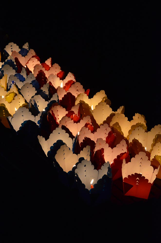 Nous avons pu participer à ce moment de recueillement en déposant sur l’eau, une bougie allumée dans une coque en papier. Sur le moment, nous étions ravies mais après réflexion, on a ajouté un peu plus de pollution dans l’eau …
